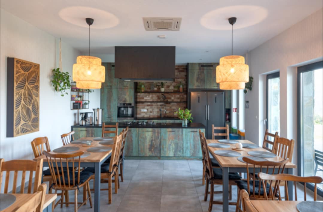 Dom Przebudzeń. Ośrodek jest położony w Beskidzie Mały, otoczony lasami, górami i pięknym widokiem na jezioro Czanieckie. Sala drewniana, przestronna z pięknymi widokami.